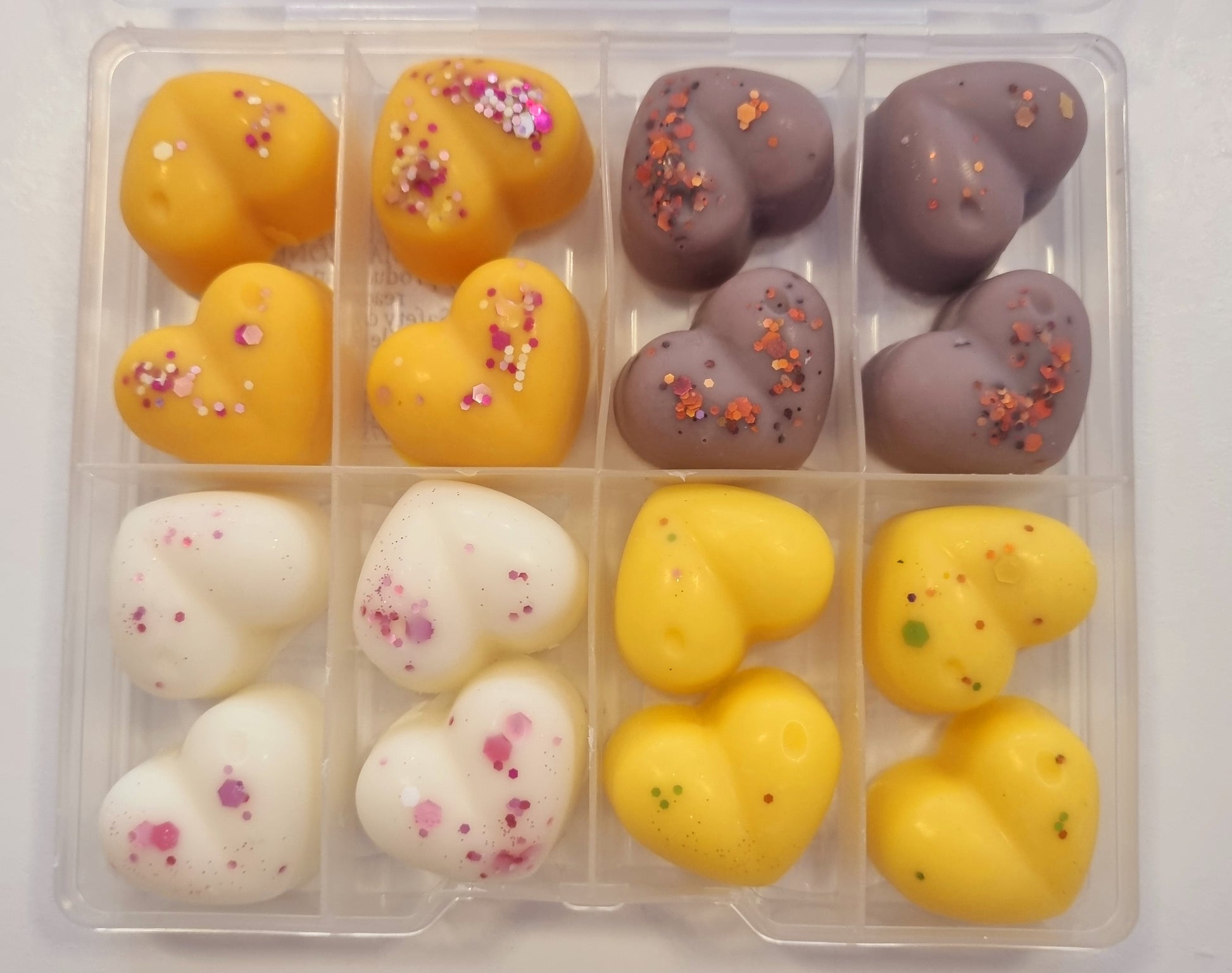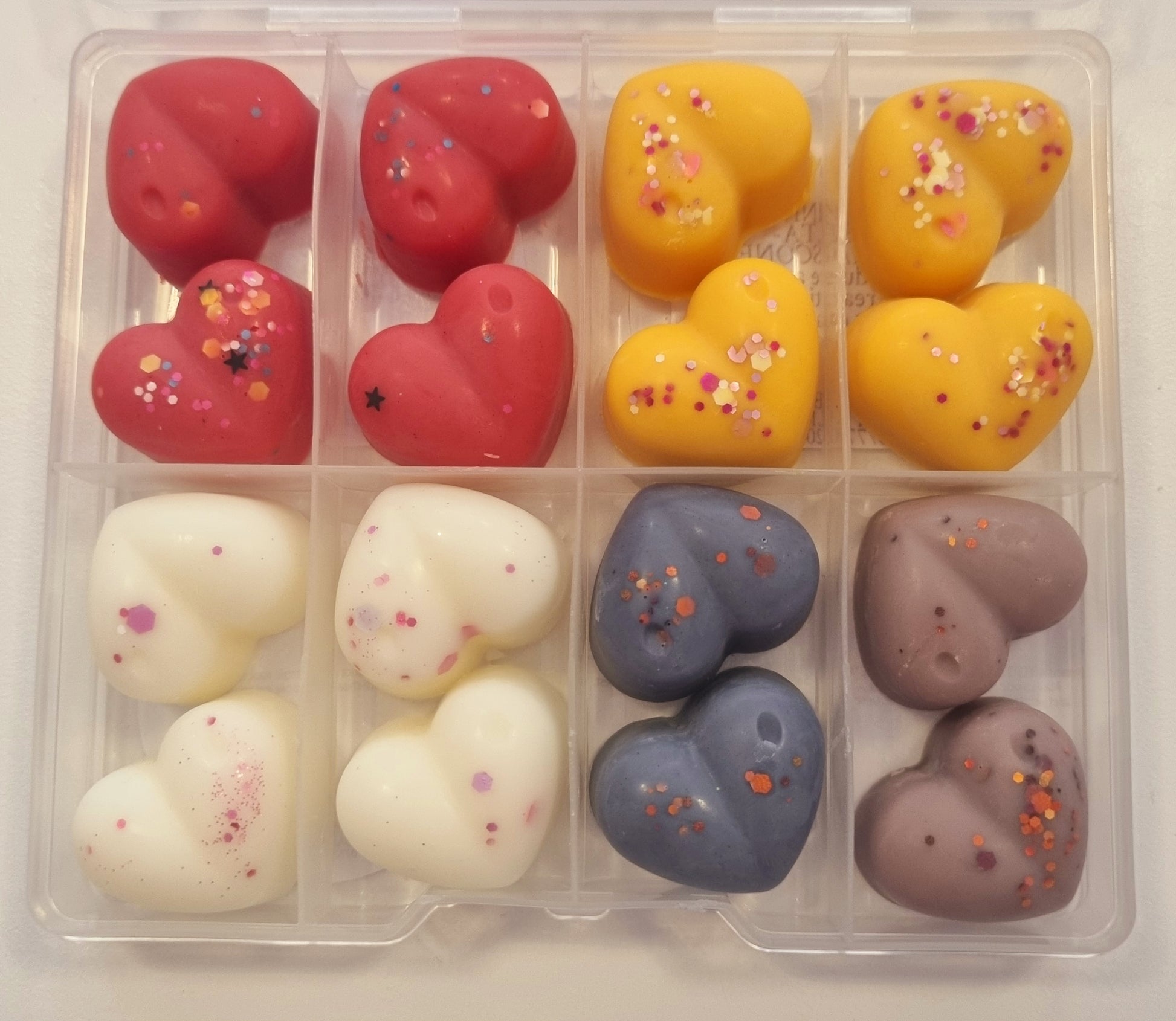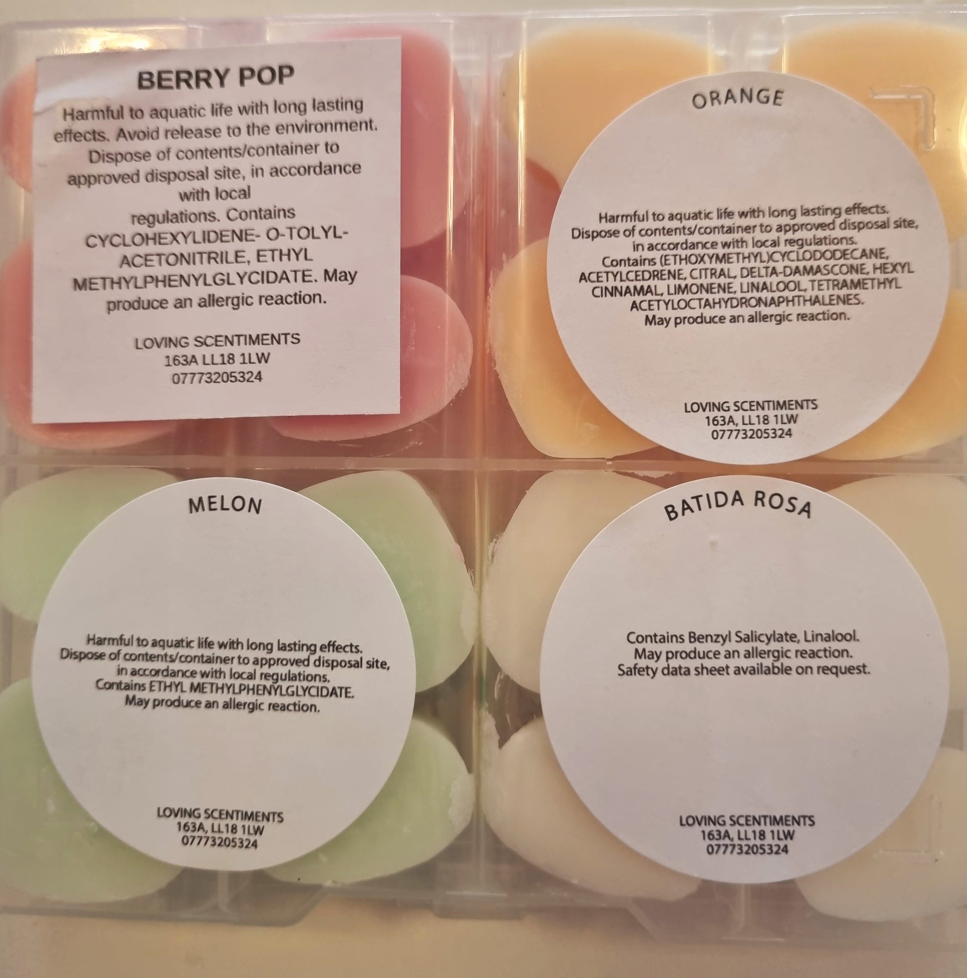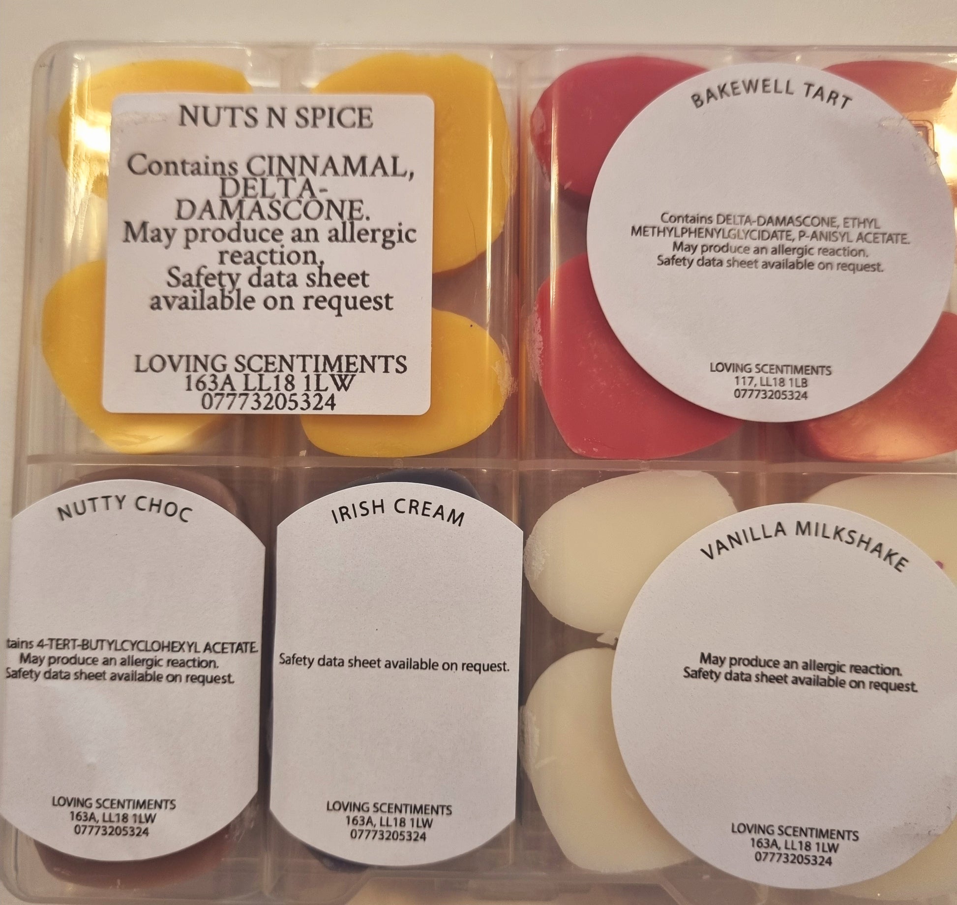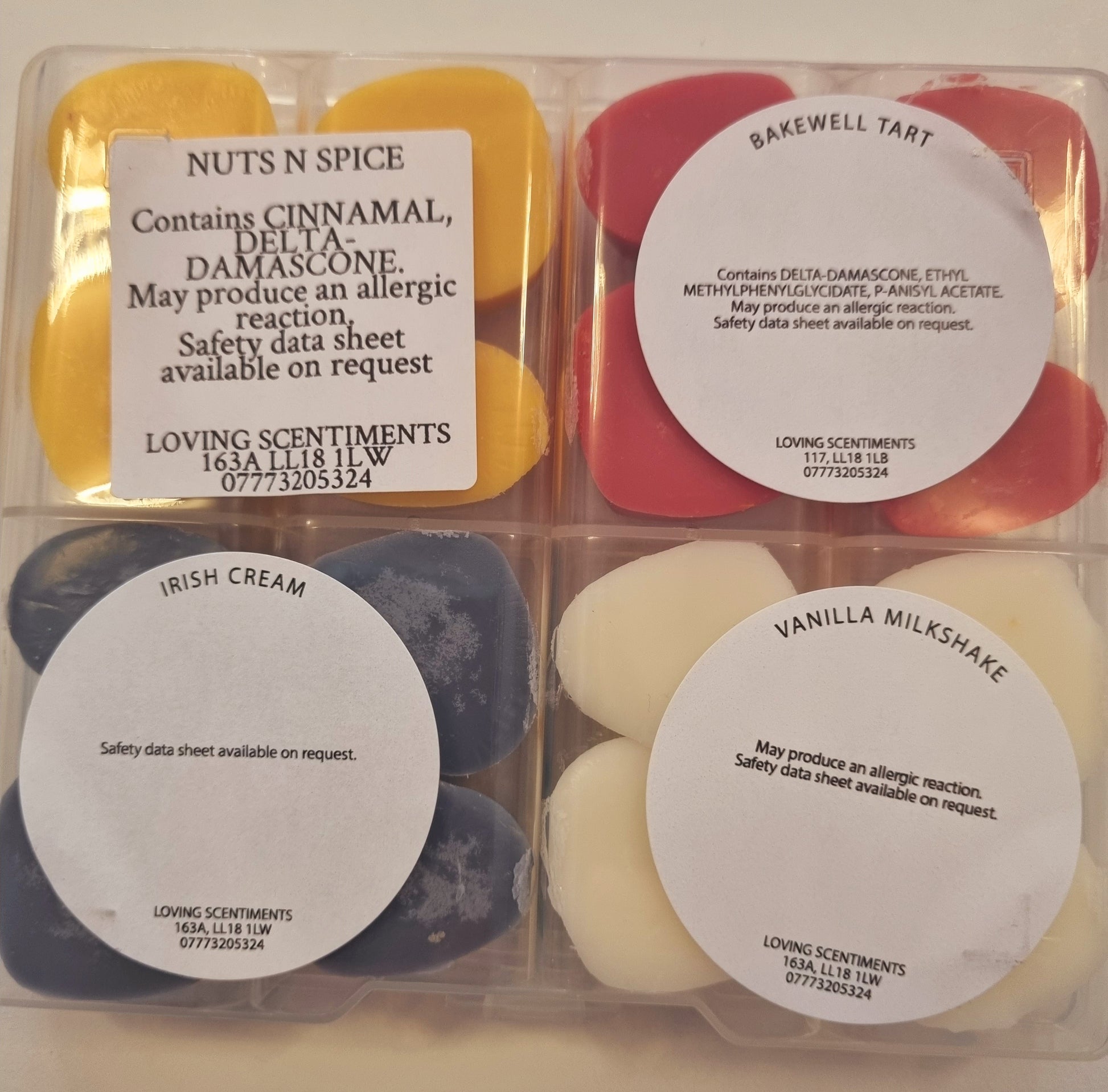 Indulge in the sweet scents of our handcrafted wax melt mini shapes. Each box contains a variety of fragrances, carefully selected to create a unique and delightful experience for your senses. With a CLP sticker on the reverse side of each box, you can rest assured that our melts are safe and compliant. Choose from a wide range of scents and enjoy a burn time of approximately 8 hours per melt. Perfect for creating a cosy and inviting atmosphere in your home.