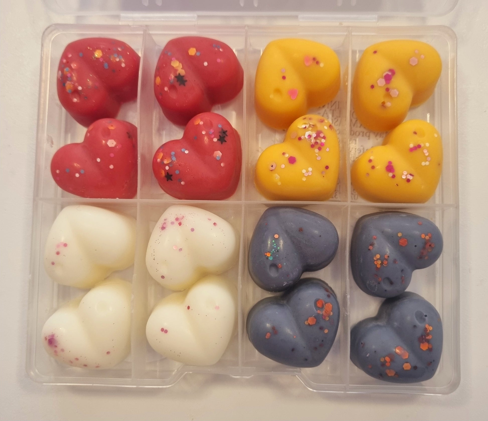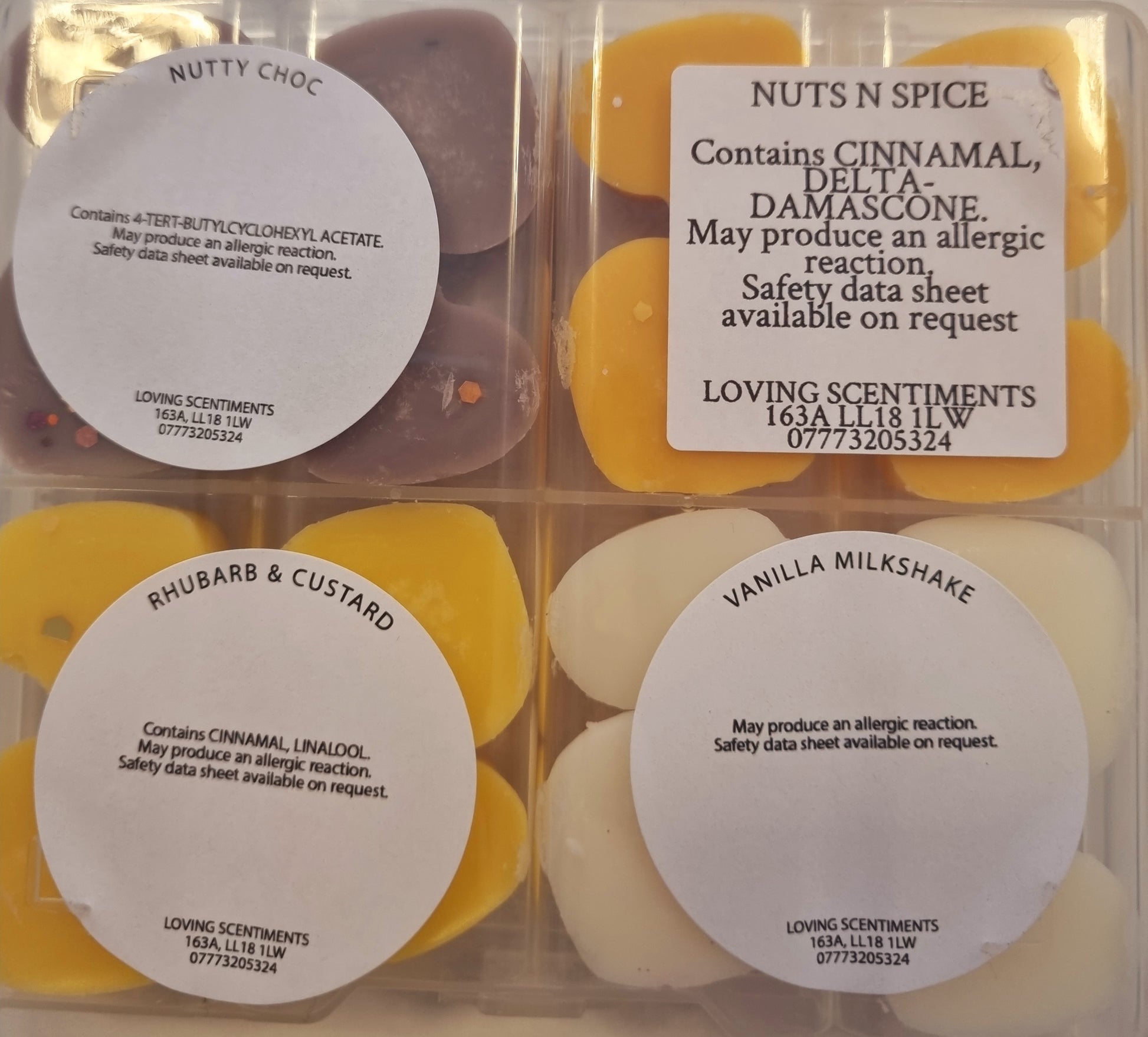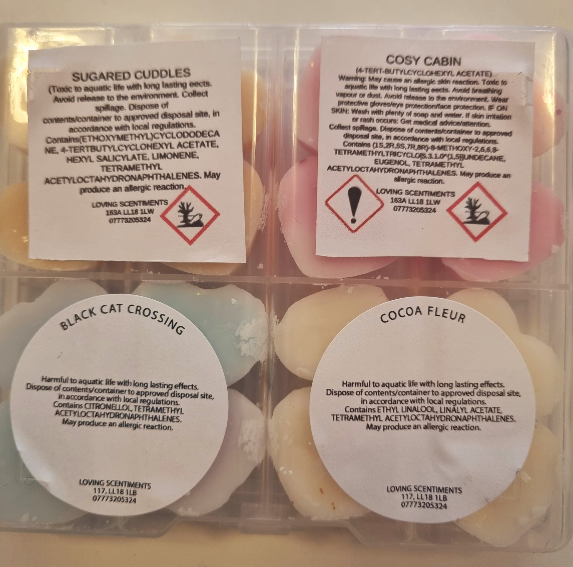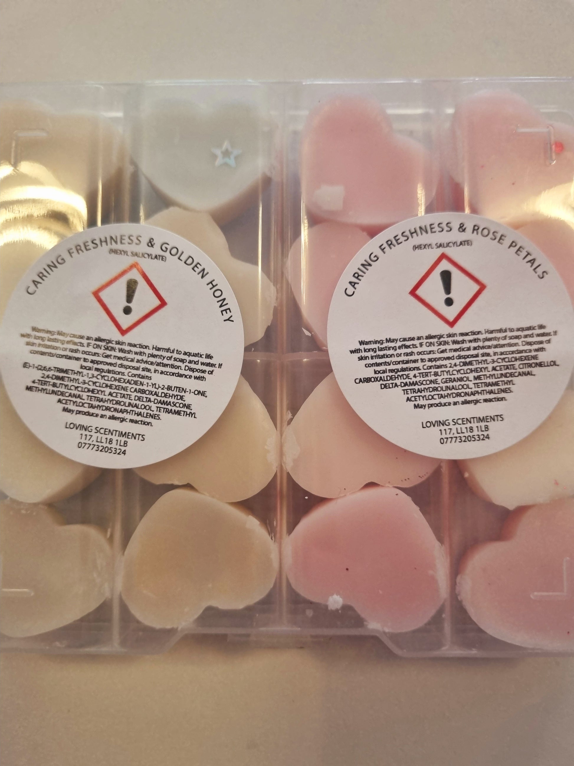 Indulge in the sweet scents of our handcrafted wax melt mini shapes. Each box contains a variety of fragrances, carefully selected to create a unique and delightful experience for your senses. With a CLP sticker on the reverse side of each box, you can rest assured that our melts are safe and compliant. Choose from a wide range of scents and enjoy a burn time of approximately 8 hours per melt. Perfect for creating a cosy and inviting atmosphere in your home.