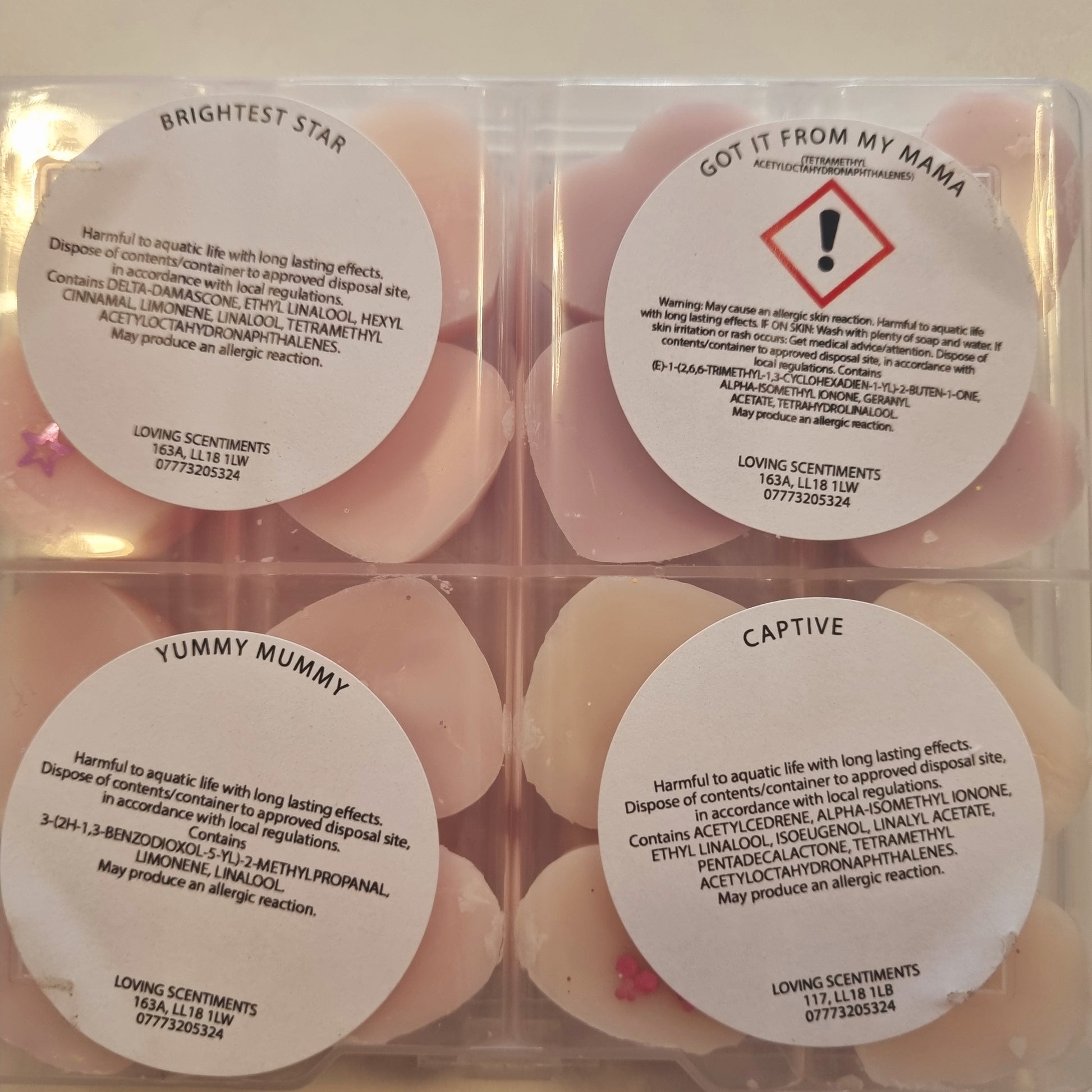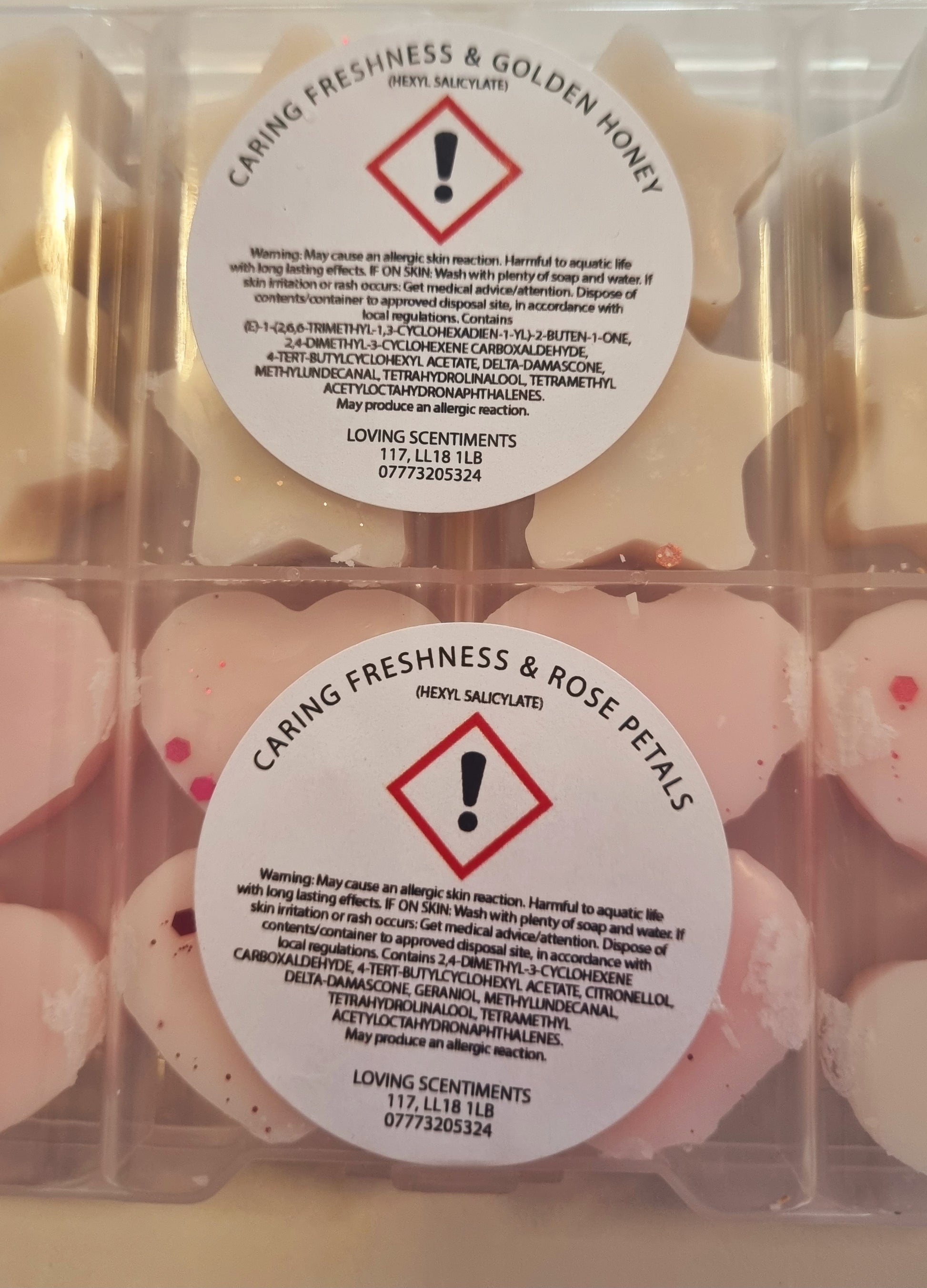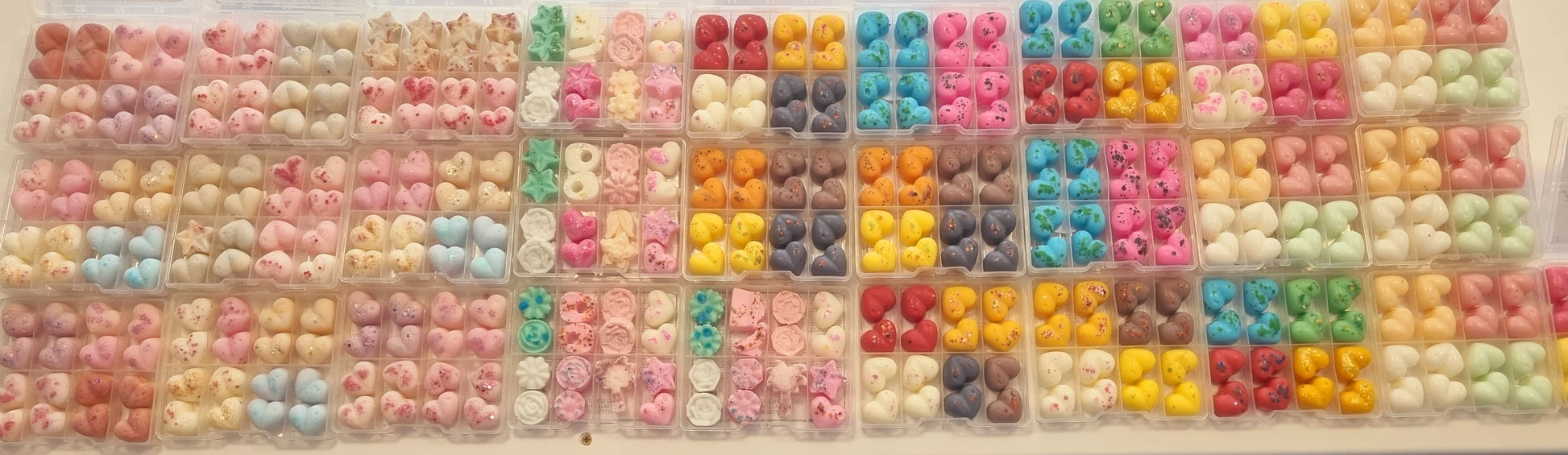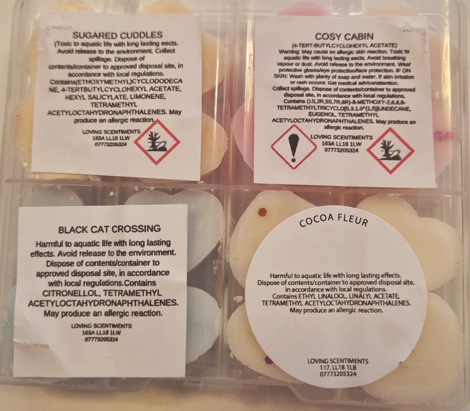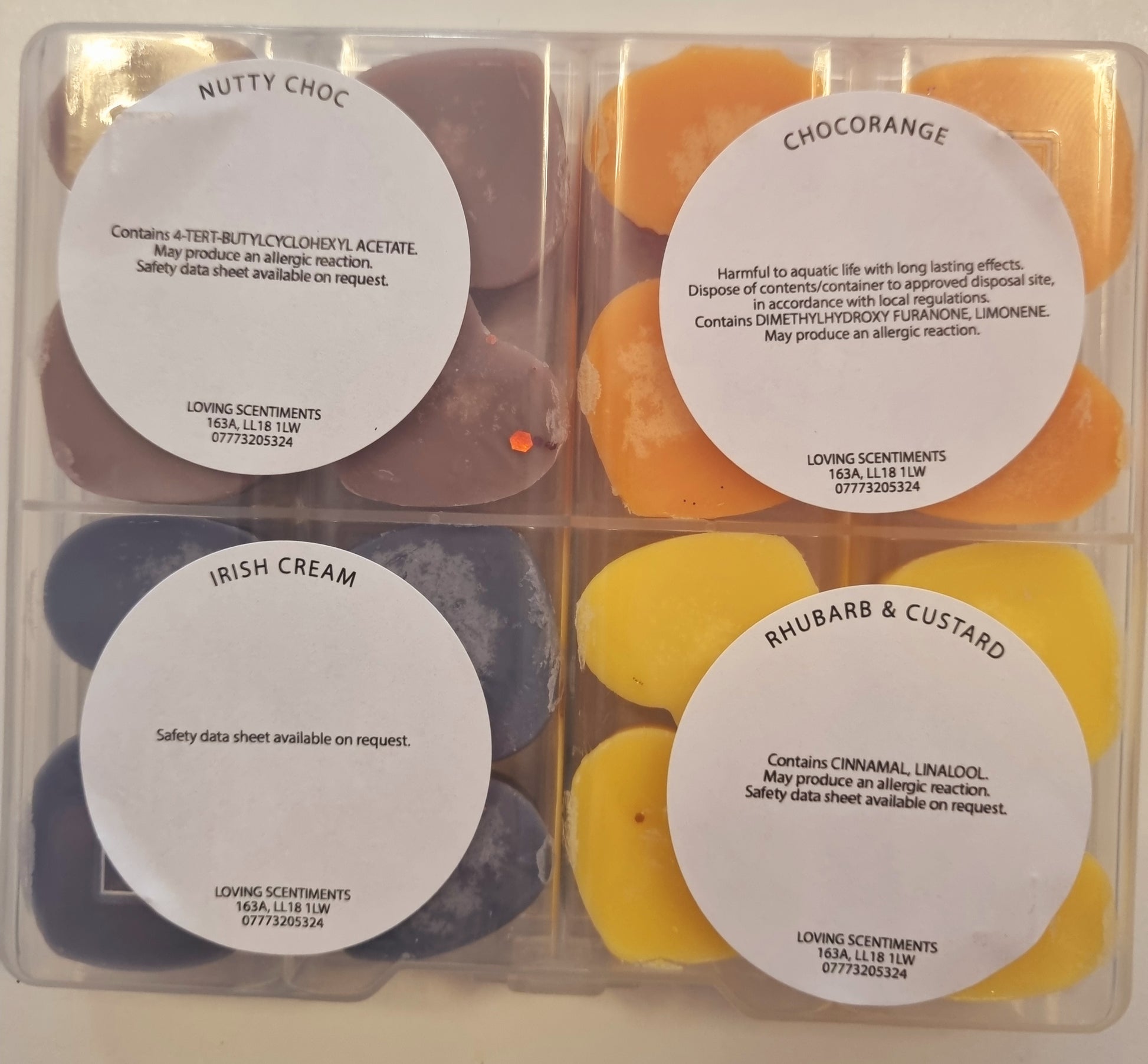 Indulge in the sweet scents of our handcrafted wax melt mini shapes. Each box contains a variety of fragrances, carefully selected to create a unique and delightful experience for your senses. With a CLP sticker on the reverse side of each box, you can rest assured that our melts are safe and compliant. Choose from a wide range of scents and enjoy a burn time of approximately 8 hours per melt. Perfect for creating a cosy and inviting atmosphere in your home.