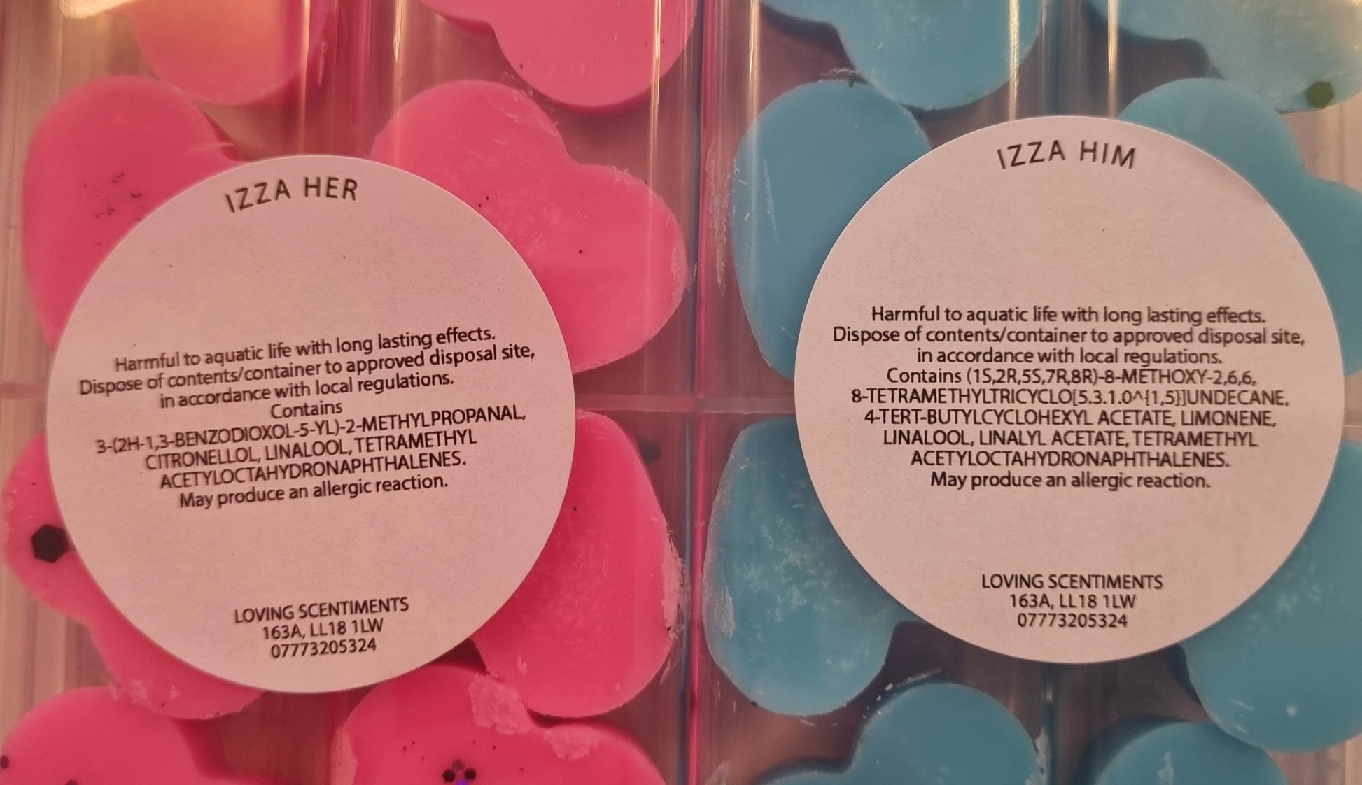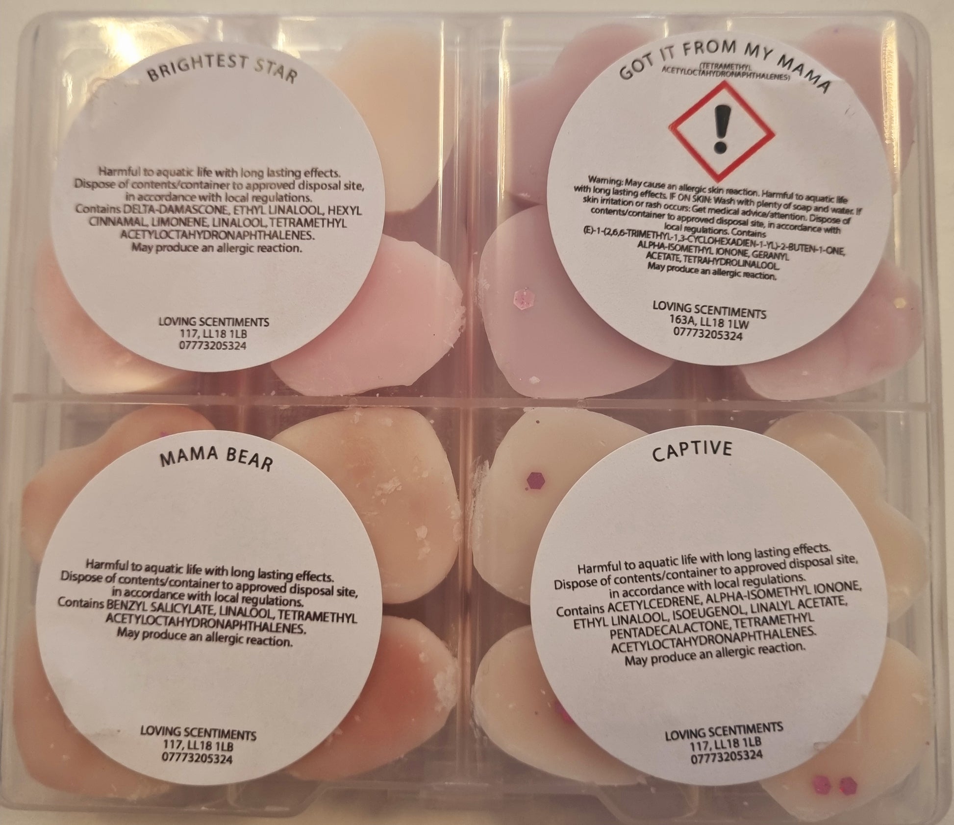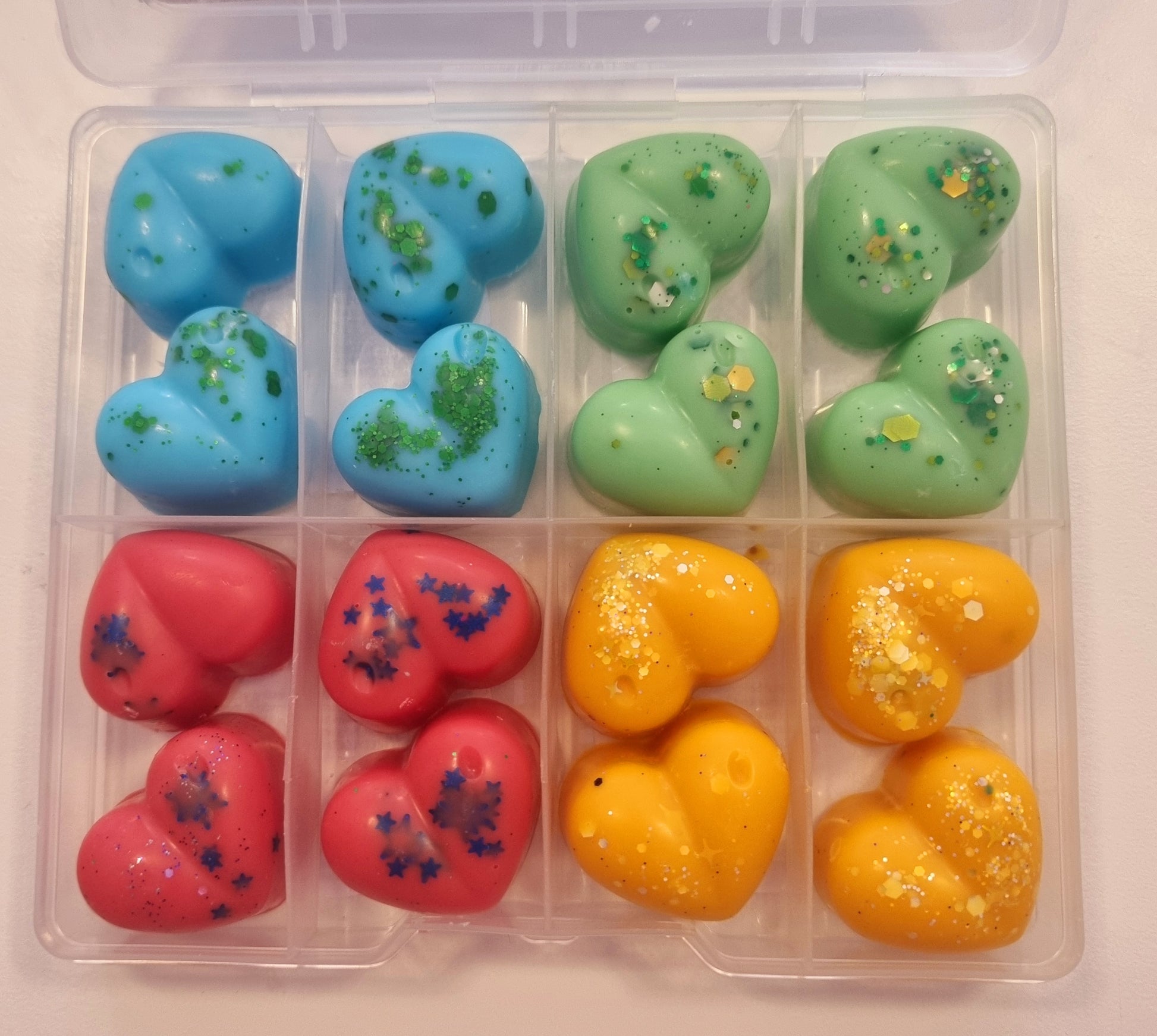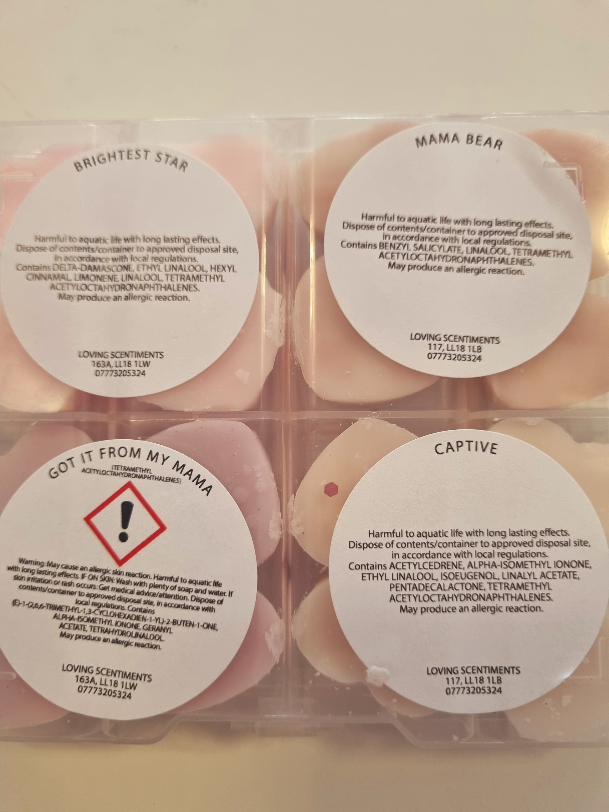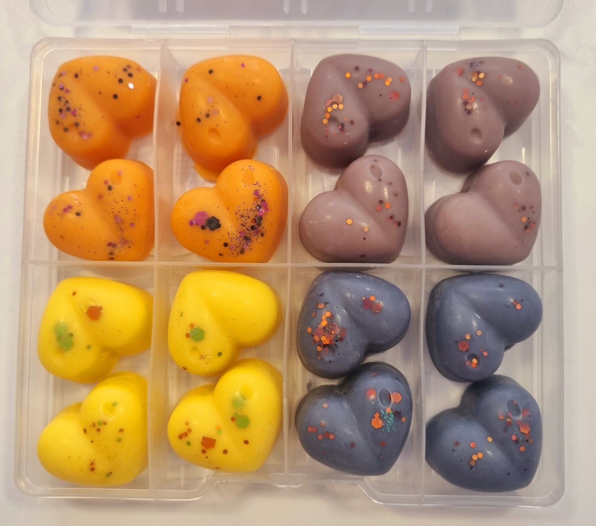 Indulge in the sweet scents of our handcrafted wax melt mini shapes. Each box contains a variety of fragrances, carefully selected to create a unique and delightful experience for your senses. With a CLP sticker on the reverse side of each box, you can rest assured that our melts are safe and compliant. Choose from a wide range of scents and enjoy a burn time of approximately 8 hours per melt. Perfect for creating a cosy and inviting atmosphere in your home.