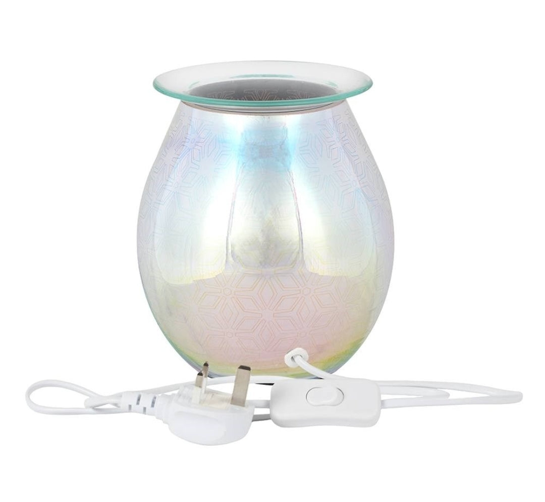 Introducing our colourful and stylish Glowing Electrical Burner, the perfect addition to your home decor. This electric oil burner features a detailed geometric pattern or an array of flower petals that light up when in use. It is compatible with both scented fragrance oils and wax melts, allowing you to create a personalised and inviting atmosphere in any room.